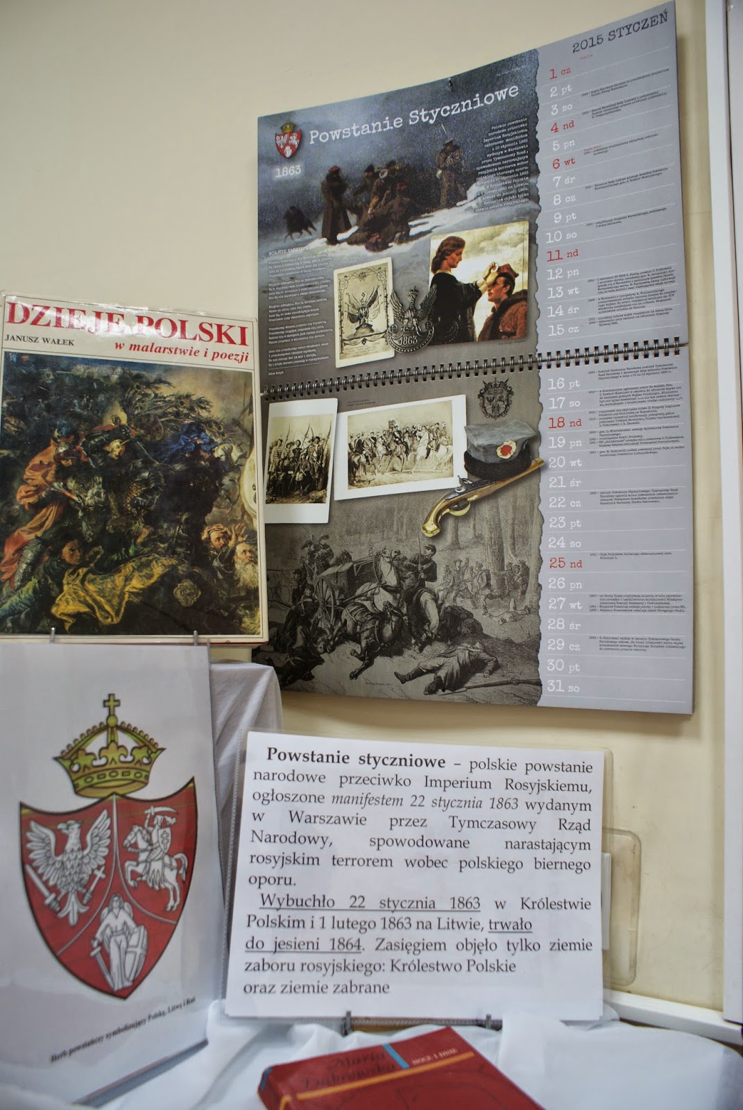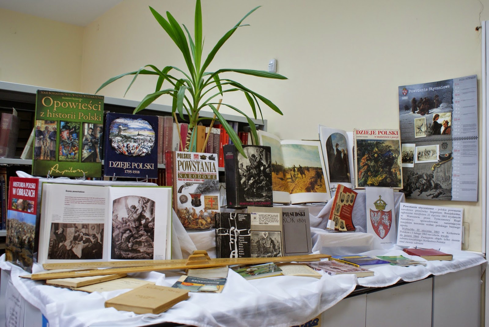 Konkursowi towarzyszyła wystawa książek o powstaniu styczniowym - opracowań historycznych, literatury pięknej z powstańczymi motywami oraz albumów z reprodukcjami dzieł malarskich.