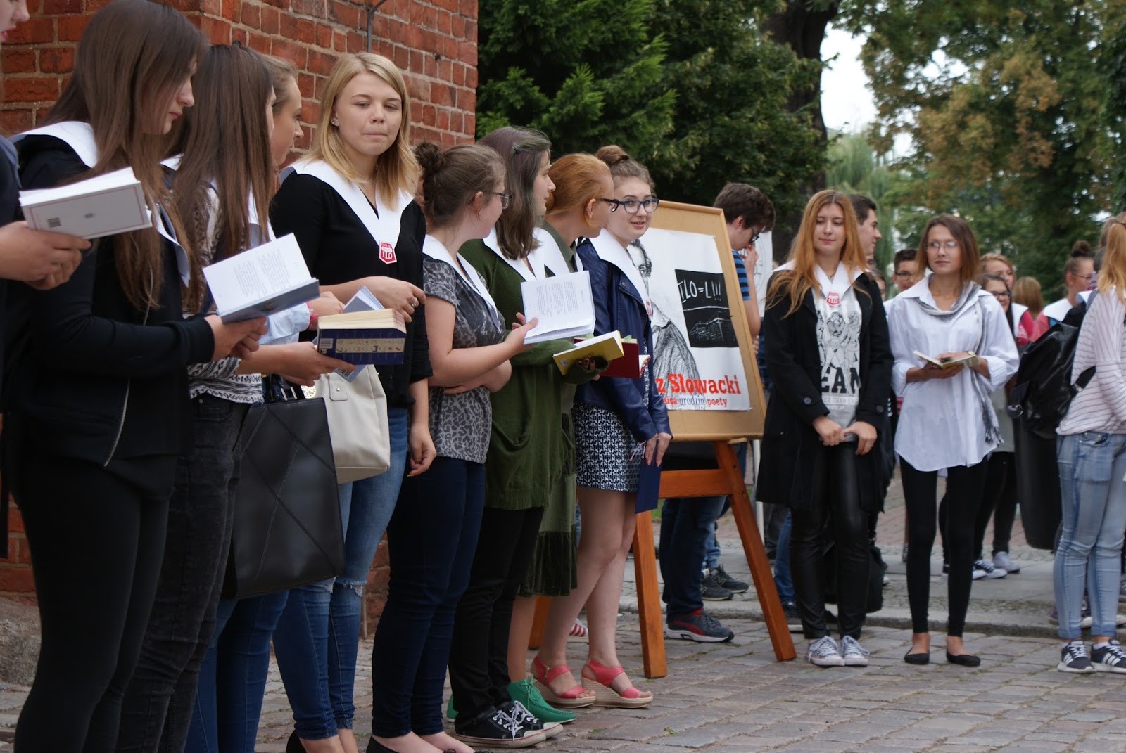 Czytanie poezji Juliusza Słowackiego w rocznicę jego urodzin odbyło się zgodnie z zapowiedzią na elbląskim Starym Mieście.  Pogoda nam dopisała, bo dzisiaj leje od samego rana. Oto krótka relacja fotograficzna.